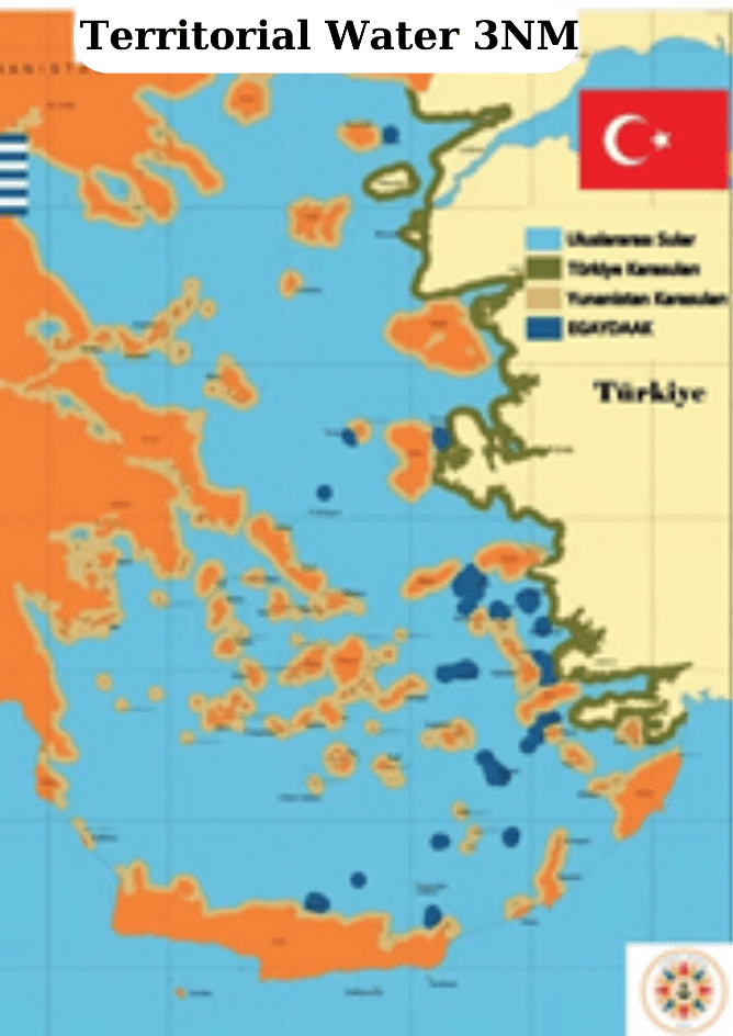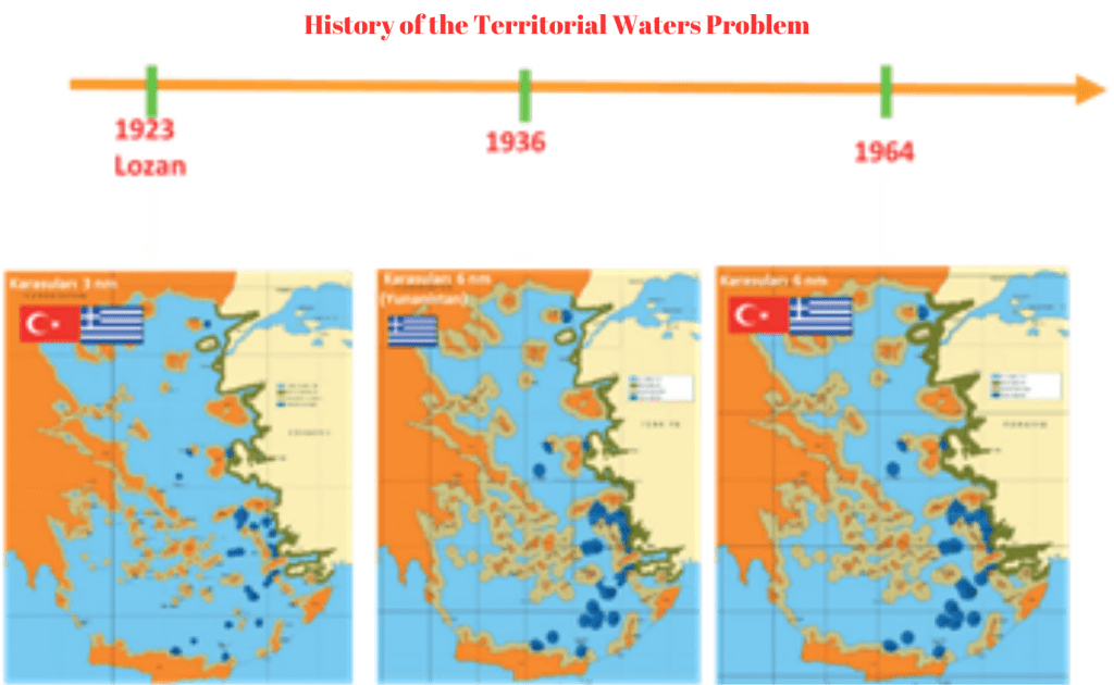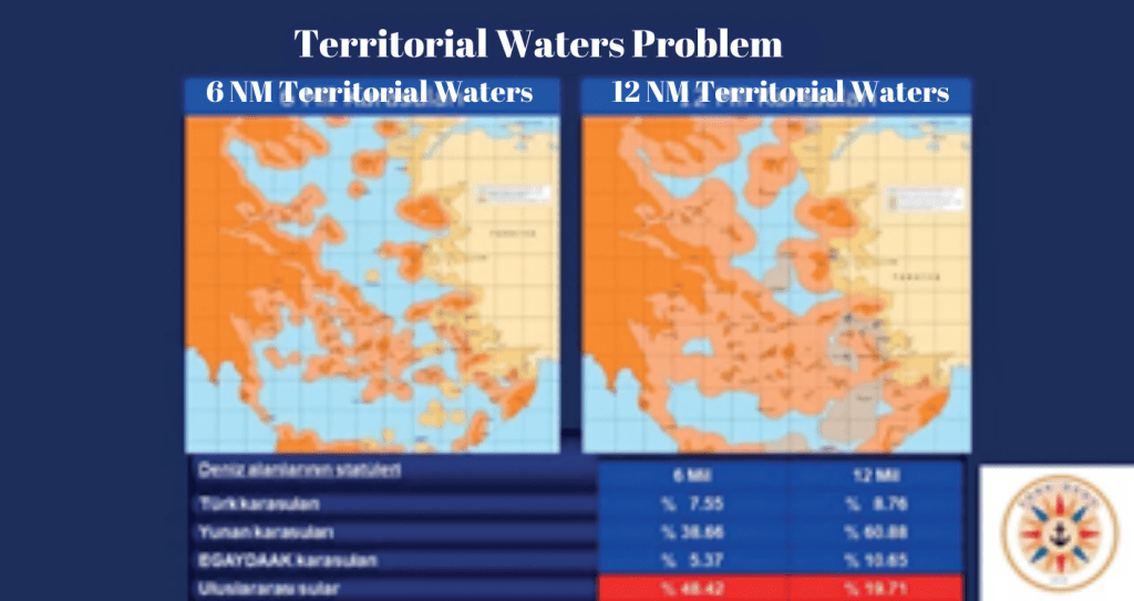 Grecia, que aumentó la anchura de sus aguas territoriales a 6 millas en 1936 rompiendo el equilibrio de Lausana, ahora quiere aumentarla a 12 millas y convertir el mar de Adalar (Egeo) en un lago griego. Si Grecia encuentra condiciones favorables y aumenta sus aguas territoriales a 12 millas, la proporción de zonas de mar abierto en el Egeo disminuirá a aproximadamente el 20% sin tener en cuenta los EGAYDAAK, mientras que la cobertura del mar territorial de Turquía pasará al 8,7% y la de Grecia al 61%.