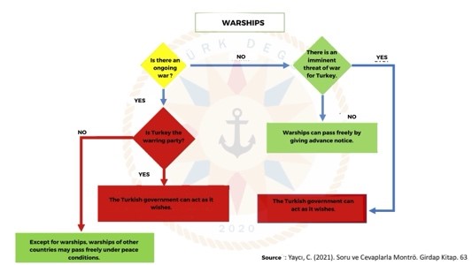 Cualquier ampliación por encima de las 6 millas náuticas debe realizarse con el consentimiento de Turquía y de manera que no cierre el transporte marítimo turco al transporte marítimo internacional. Si Grecia extiende sus aguas territoriales a 12 millas náuticas en el Mar Egeo, es probable que se produzcan los siguientes acontecimientos: