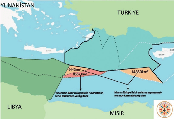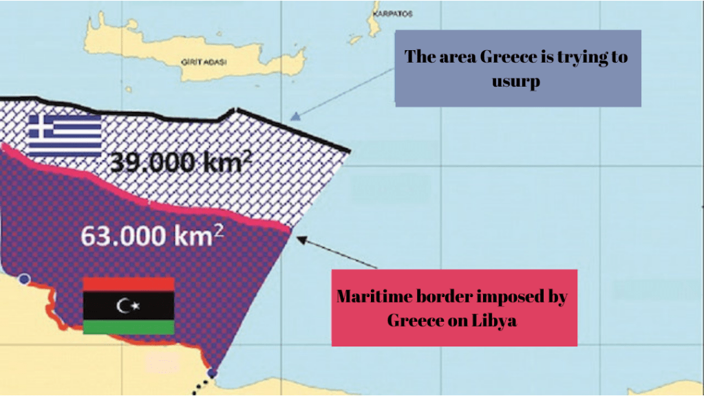 Con el Memorando de Entendimiento sobre delimitación de la jurisdicción marítima firmado entre Libia y Turquía el 27 de noviembre de 2019, Libia ganó una zona de jurisdicción marítima de 16.700 km² respecto al mapa impuesto por Grecia y allanó el camino para ganar al menos 39.000 km² en total si firma acuerdos bajo el mismo principio. A diferencia de los acuerdos de delimitación firmados por Chipre con otros estados ribereños del Mediterráneo Oriental, este tratado cumple con los principios de equidad, supremacía de la geografía, proporcionalidad y no clausura del derecho internacional del mar. Desde esa percepción, este acuerdo es un ejemplo significativo de cómo se podría firmar un acuerdo justo y válido entre los estados costeros del Mediterráneo oriental para establecer la estabilidad en la región.