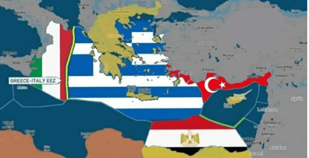 Lamentablemente, el mundo no comprende la tesis de Grecia y falta conocimiento sobre cómo la tesis de Grecia va en contra del derecho internacional y del derecho del mar. Grecia basa su reclamación de jurisdicción marítima en el Mediterráneo oriental no en el hecho de que sus islas tengan una ZEE separada, sino en la afirmación de que es un Estado archipiélago formado únicamente por islas como Japón, Filipinas e Indonesia. En otras palabras, afirma que la frontera nacional es la línea que une sus islas más exteriores y que la medición de la jurisdicción marítima debe hacerse a partir de esta línea. Durante las negociaciones para la Convención de las Naciones Unidas sobre el Derecho del Mar de 1982, Grecia insistió en que debía ser considerada un estado archipelágico como Japón, Filipinas e Indonesia, e incluso interrumpió las negociaciones por este motivo, pero no logró que nadie la aceptara este reclamo.