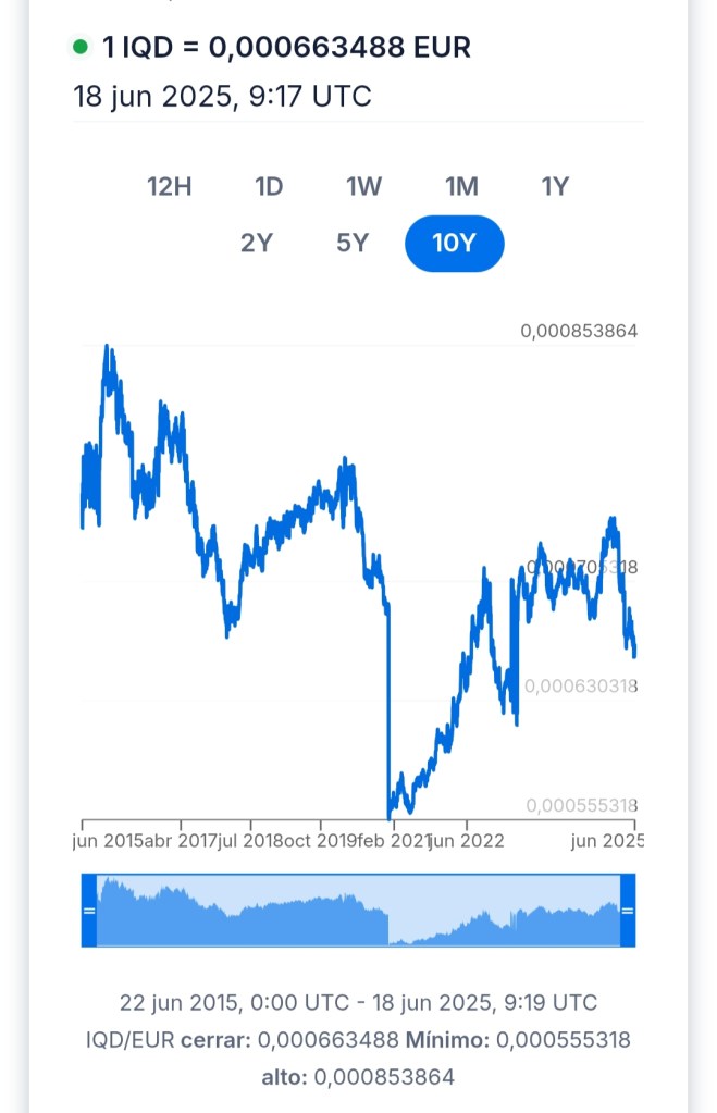 Desde aproximadamente 0,000555 EUR por IQD en 2015, el Dinar ha atravesado fluctuaciones, incluyendo un descenso en 2021, pero ha mostrado una tendencia de recuperación que lo ha llevado a situarse en torno a 0,00066348 EUR. Este incremento refleja una economía en proceso de estabilización y crecimiento, con señales de mayor confianza internacional, especialmente en un país con vastas reservas petroleras y reformas en marcha. La recuperación del valor del Dinar indica resiliencia y un horizonte prometedor para inversores que buscan diversificar en mercados emergentes con recursos significativos.