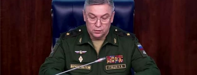 El general advirtió sobre la pérdida de 68 fuentes de radiación ionizante en la región de Járkov, algunas de «alta actividad», y alertó que un accidente en la central nuclear de Zaporiyia podría dispersar materiales radiactivos «cientos de kilómetros», afectando a Ucrania y Europa. Además, denunció que manuales de entrenamiento de servicios de seguridad ucranianos incluyen simulaciones de robos de material radiactivo para atentar contra civiles.